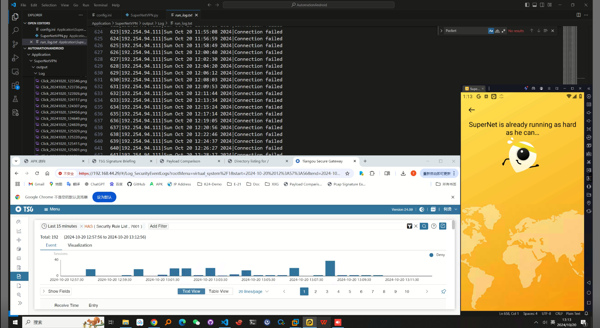 SuperNetVPN 单跳VPN 安卓模拟器使用自动化拨测工具获取服务器IP共计16个,自动拨测8小时 400 次 未穿透