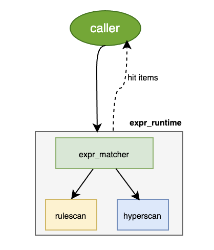 Among the four types of runtimes mentioned above, expr_runtime is relatively unique. Its expr_matcher supports two types of scanning engines: hyperscan and rulescan. Other xx_runtime directly calls the corresponding xx_matcher to obtain scanning results.